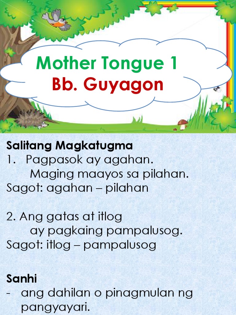 Mother Tongue 1 Longtest 1 2nd Qtr Pptx